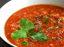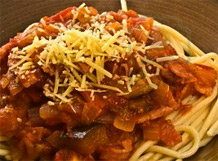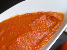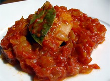 Añada el tomate triturado y la albahaca. Agregue una pizca de azúcar, y deje espesar. Retire la salsa.
